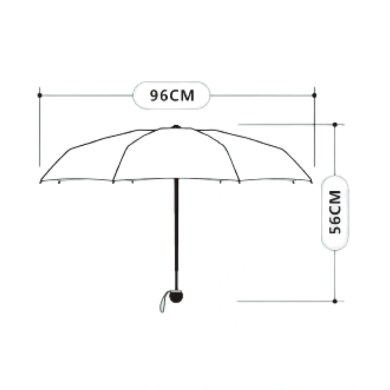 Avec un poids léger de 310 gr. et une taille compacte de 96cm-56cm-21cm, notre petit parapluie élégant se glisse facilement dans votre sac ou votre porte-documents. Imaginez-vous partant pour une journée au bureau ou une sortie pleine de style sans vous soucier du temps.